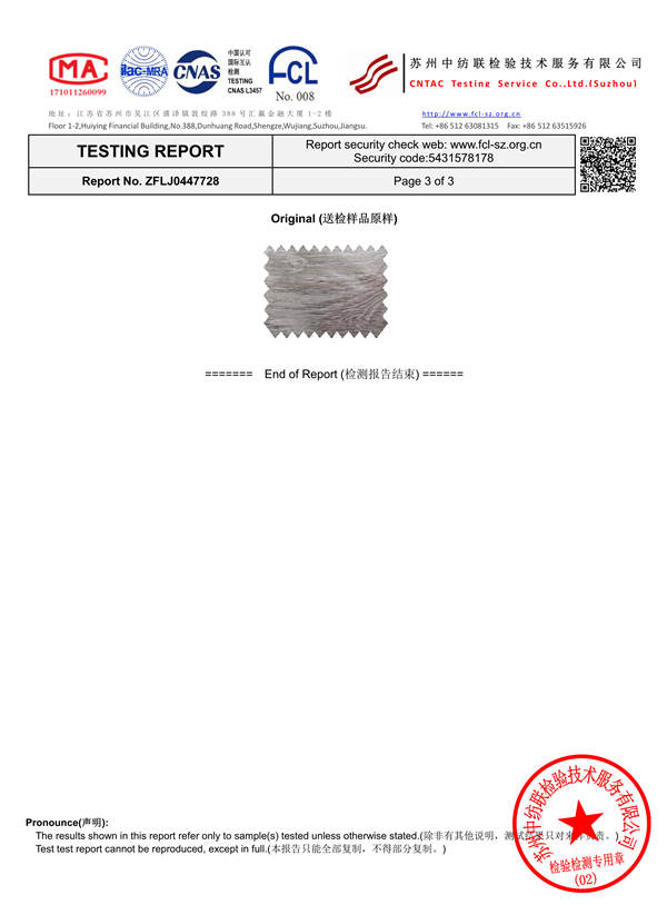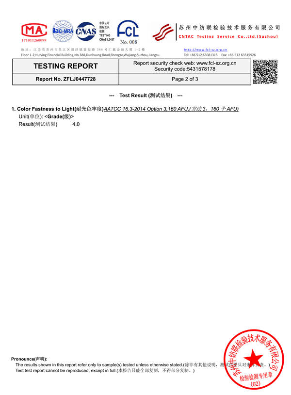 Carifa color film color fastness test report